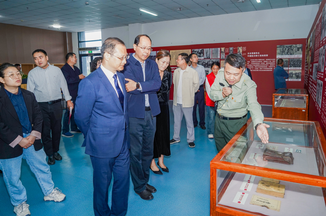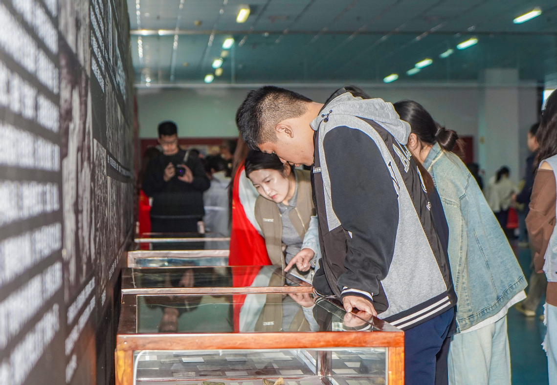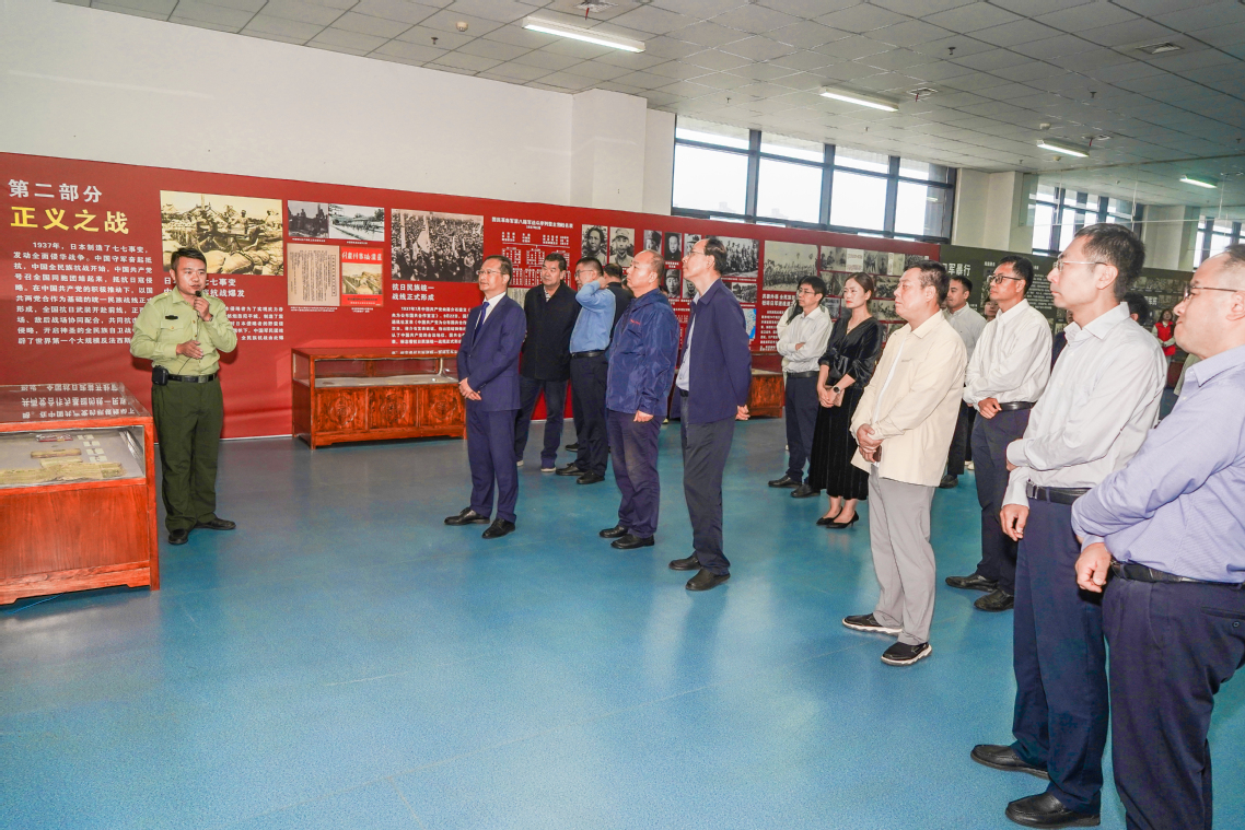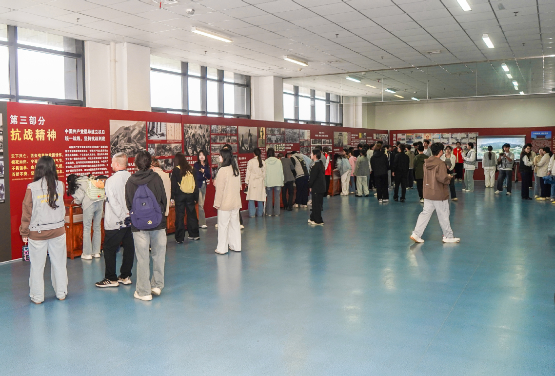 开幕式后,在我校校友、洛卫军品博物馆馆长王洛卫的讲解下,与会人员集体参观展览,详细了解抗战历史,感悟伟大抗战精神。据了解,此次展览拟持续1个月,面向广大师生和社会公众开放。
