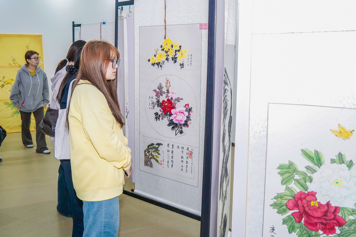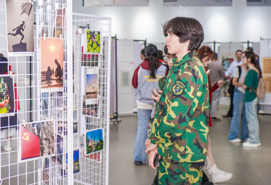 开幕式后,广大师生集体参观展览,在每一幅作品前驻足欣赏,校书法家协会会员、校美术家协会会员、“五老”人员与青年师生、参展作者互动交流,大家相互点评作品、分享经验,交流摄影技巧,讲述书画中蕴含的文化内涵与历史传承。