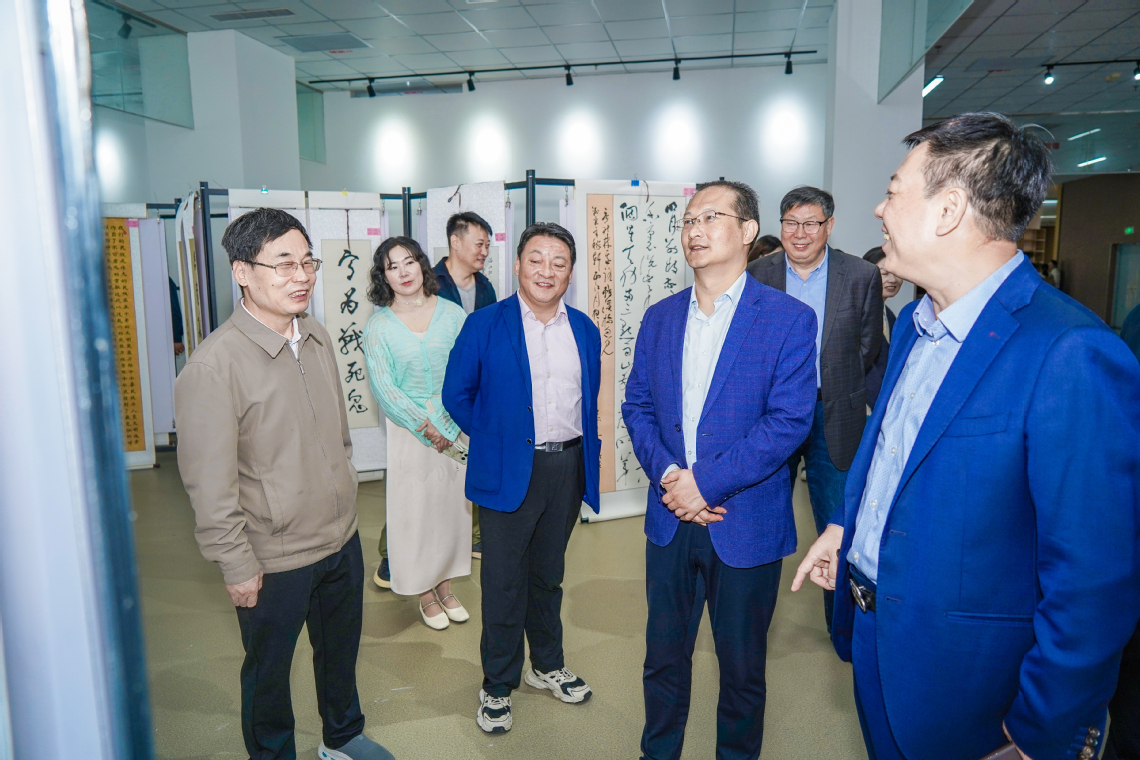 9月29日,洛阳职业技术学院“弘扬伟大抗战精神 共谱祖国繁荣华章”迎国庆书画摄影剪纸艺术作品展在图书馆5楼开幕,党委书记赵健、校长李保安参观展览。