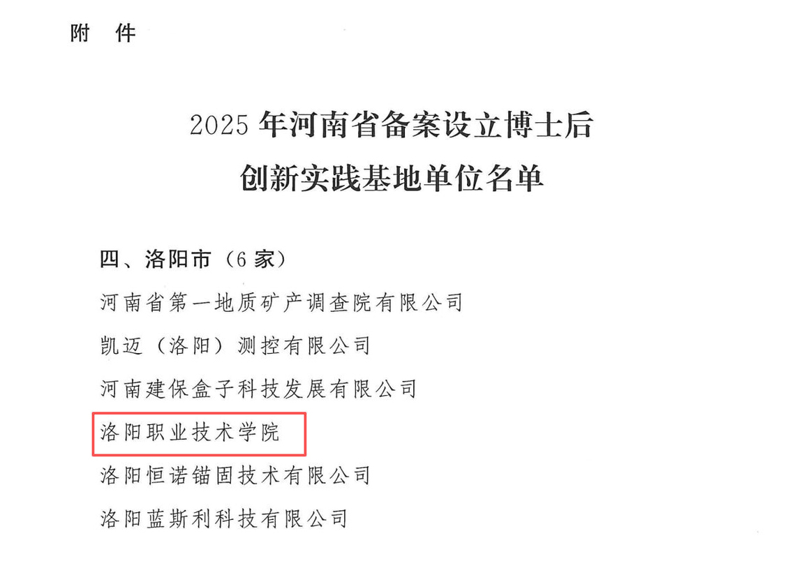 近日,河南省人力资源和社会保障厅公布了2025年河南省备案设立博士后创新实践基地单位名单,我校成功入选,这一突破性成就既是学校长期深耕人才强校战略的成果,更标志着学校在高层次人才“引、育、用、服”全链条建设领域迈入新阶段。