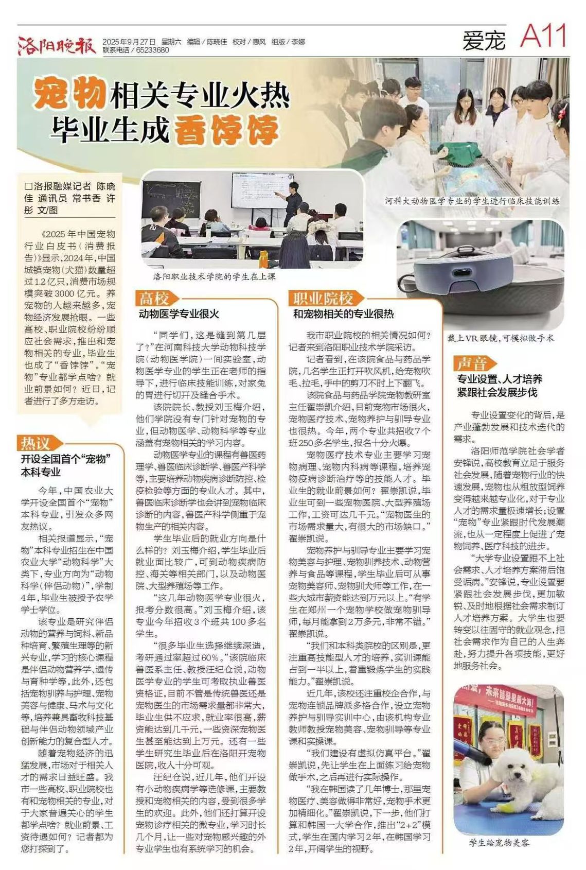洛阳晚报:宠物相关专业火热毕业生成香饽饽