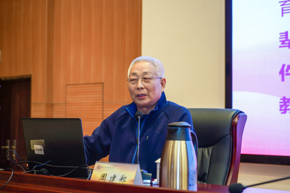 现场互动环节,周建郑围绕课程思政与专业融合等与教师进行面对面交流,为他们答疑解惑。
