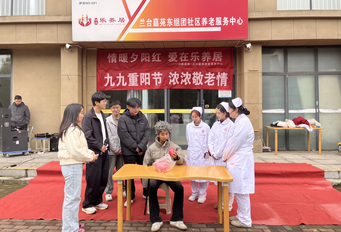 护理与康养学院联合基础医学院、戏曲艺术学院到兰台嘉苑社区开展“青春伴银龄 重阳暖同行”文艺汇演活动。学生志愿者们表演了关爱老年人心理健康情景剧、医学营养知识情景剧和精彩的舞蹈表演,并为老人开展科技助老设备讲解,与老年人进行温情互动,用专业技能开展社会服务,弘扬敬老爱老传统美德。
