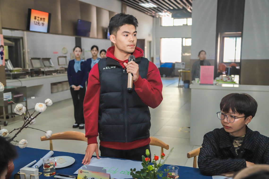 “我和校领导面对面”第六期以“承时序之智 启未来之思”为主题,由党政办公室主办,文化遗产与传播学院承办,充分发挥学院专业特色优势,通过“入席·暖冬品茗 三才启思”“话积淀·冬藏蓄力 积累之思”“话匠心·藏精成器 匠心之思”“话协作·百财‘合’融 共赢一刻”“话未来·金桂‘圆’梦 未来期许”5个篇章,将非遗节气融入师生交流,搭建起校领导与师生沟通桥梁,让与会领导与学生在领略传统文化中,共话初心使命、畅聊未来成长。