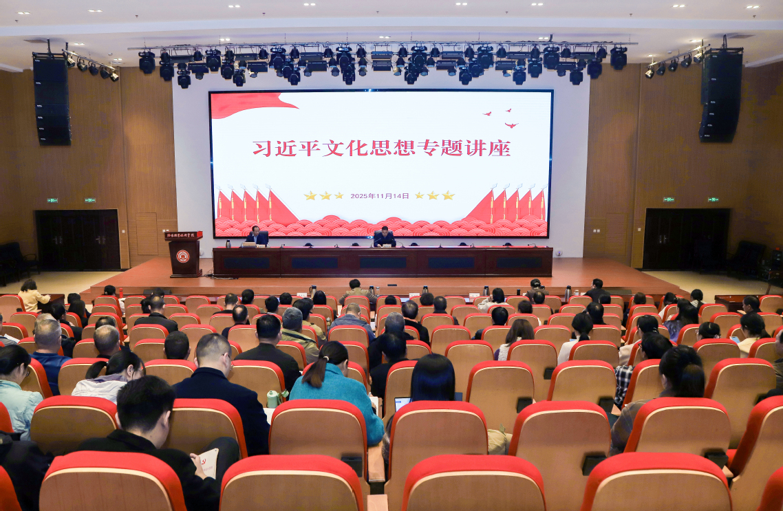 为深入学习习近平文化思想,学习贯彻党的二十届四中全会精神,11月14日,我校组织举办习近平文化思想专题讲座,云南省社会科学界联合会党组成员、副主席王建华应邀作专题报告。