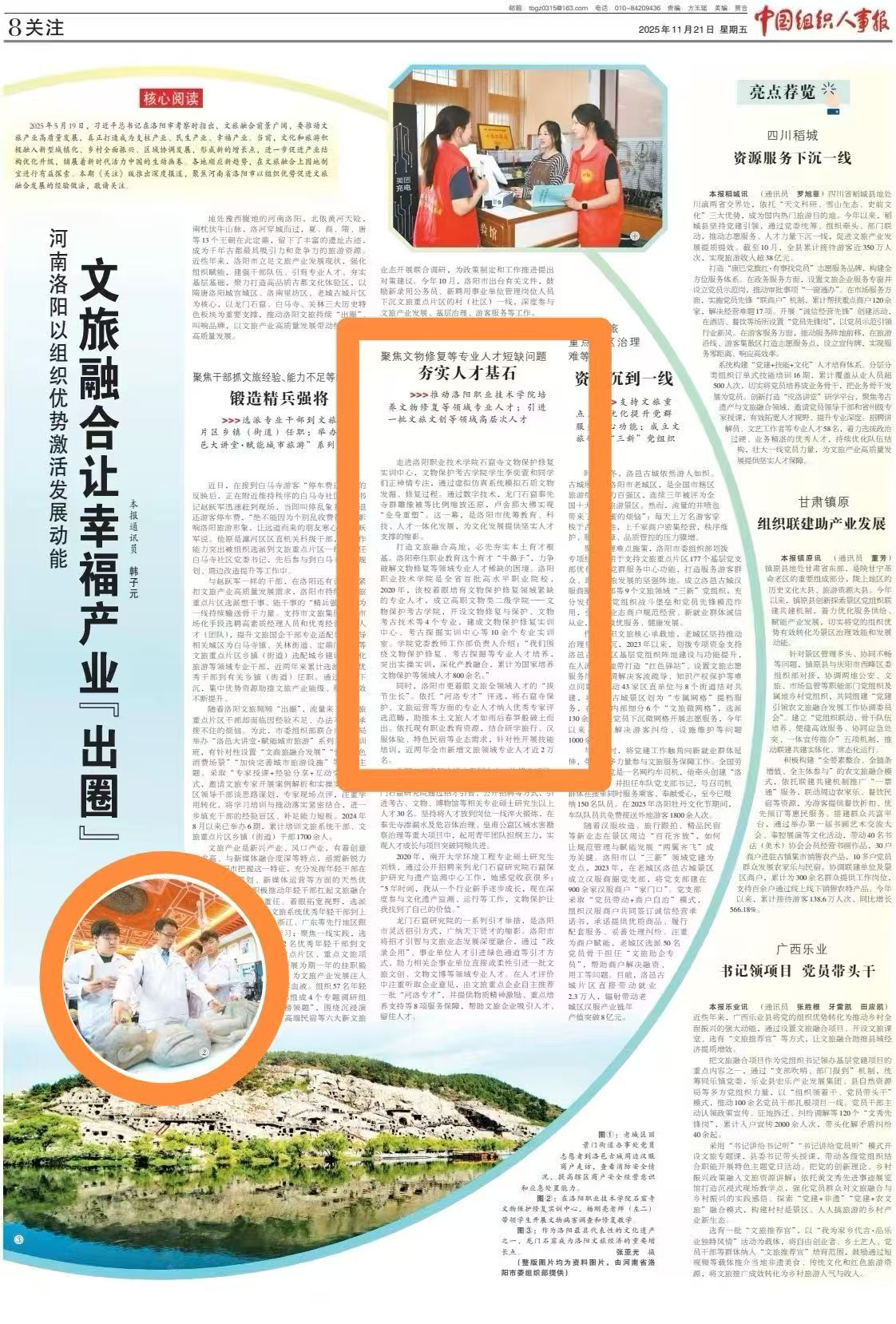 中国组织人事报:推动洛阳职业技术学院培 养文物修复等领城专业人才;引进 一批文旅文创等领城高层次人才