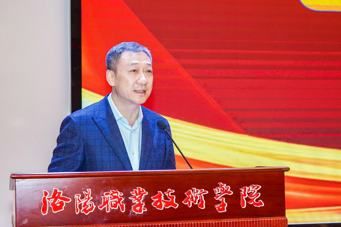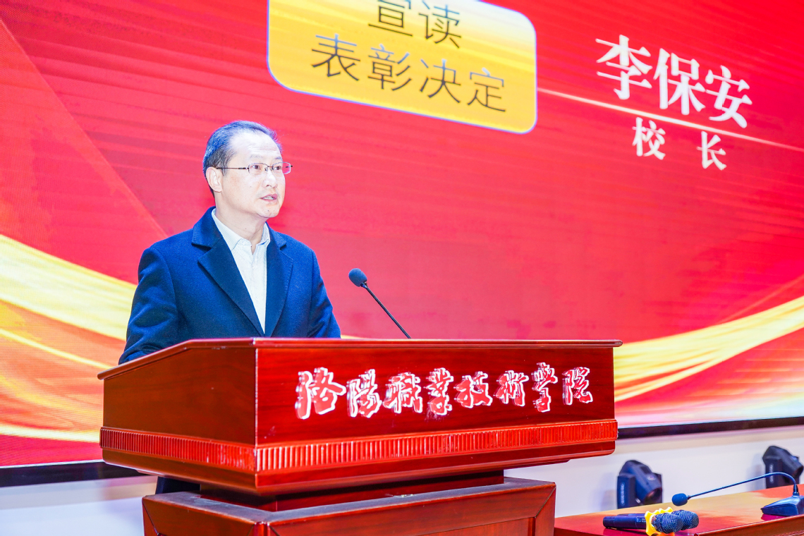 李保安宣读表彰决定,分别授予朱雪娟、雷鲜会、王雪涛、张莹、赵培文、丁南、刘书莲、王璐、李玉萍、陈翔宇、刘娅、尤子吟12名在世界职业院校技能大赛中获奖的指导老师“桃李芬芳·卓越贡献奖”。