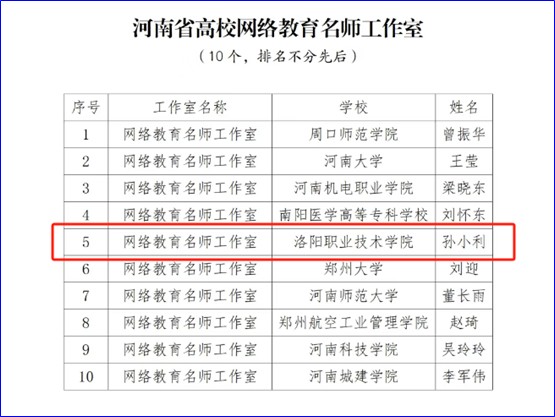 近日,中共河南省委教育工委、河南省教育厅公布2025年河南省高校思想政治工作质量提升综合改革与精品建设项目拟立项名单,我校马克思主义学院副院长孙小利牵头申报的工作室成功获批河南省高校网络教育名师工作室。