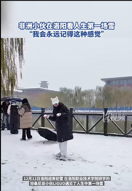 洛视频:非洲小伙在洛阳看人生第一场雪,“我会永远记得这种感觉”