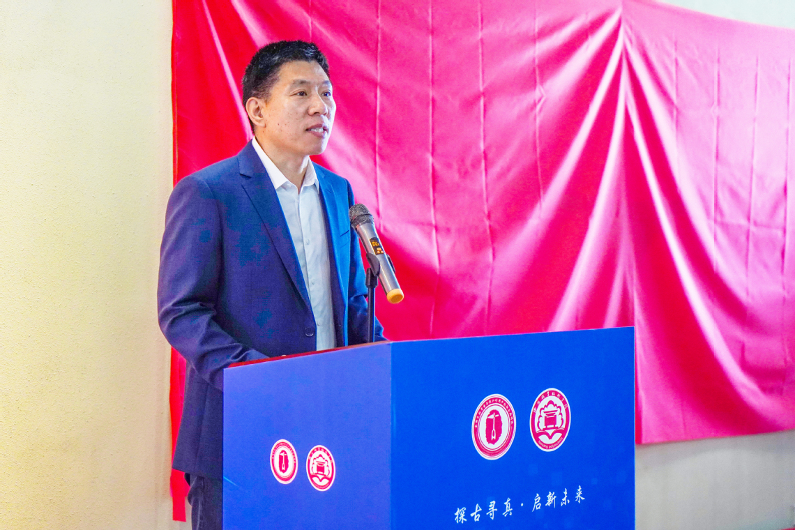 张卫国在致辞中表示,文物考古展示馆依托洛阳独一无二的文物资源优势,将“在地资源”转化为“育人资源”,打造“产教融合、协同育人”的实体平台,是学校“科技赋能、守正创新”的集中体现。期待展示馆能成为共同体成员单位交流思想、深化合作的“新纽带”,激发青年学子文化自觉、坚定工匠精神的“新课堂”,向社会公众展示考古魅力、传播河洛文化的“新窗口”。