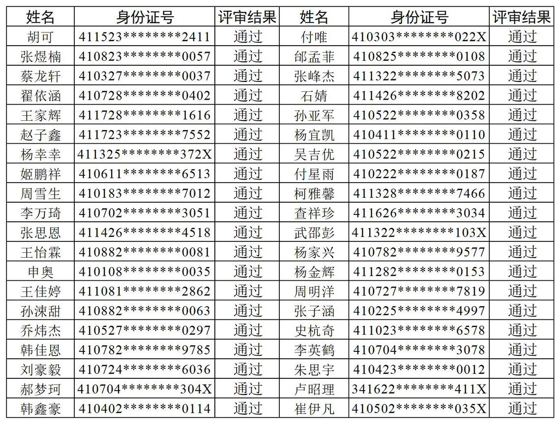 现将评审通过名单公示如下,公示期2026年4月24日-4月26日,监督电话0379-63189387。