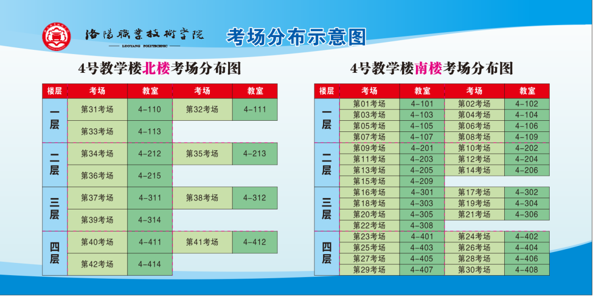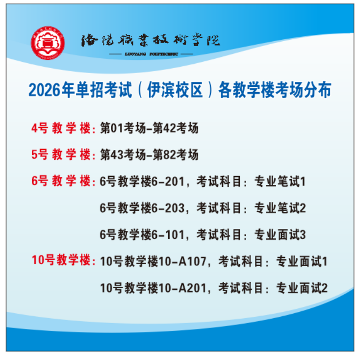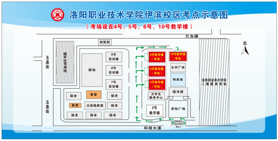 洛阳职业技术学院伊滨校区:洛阳市科技大道6号(考生通道设在南门)