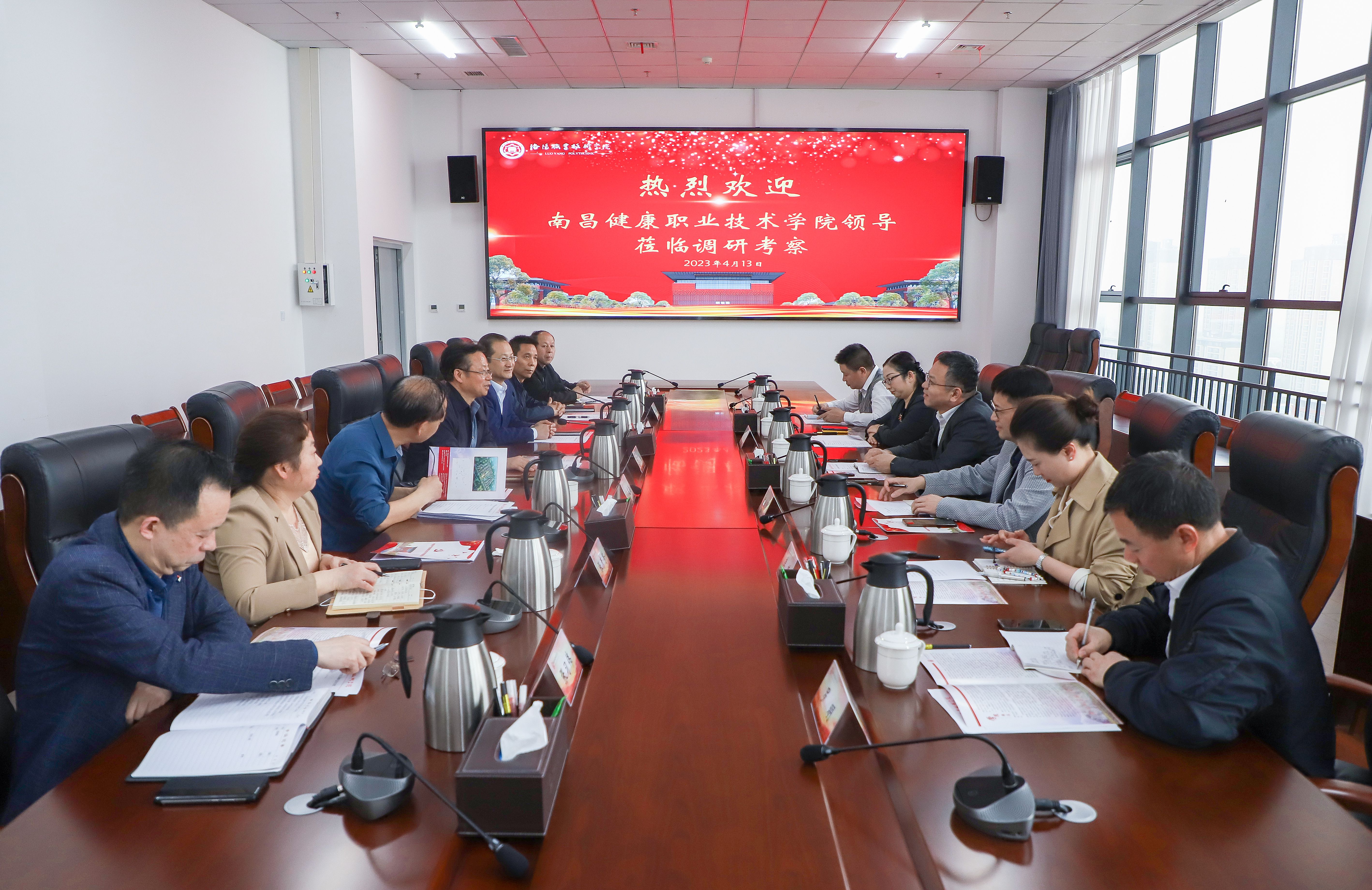 4月13日,南昌健康职业技术学院党委书记、院长黄俭带队到我校考察调研,我校党委书记朱美荣,校领导李保