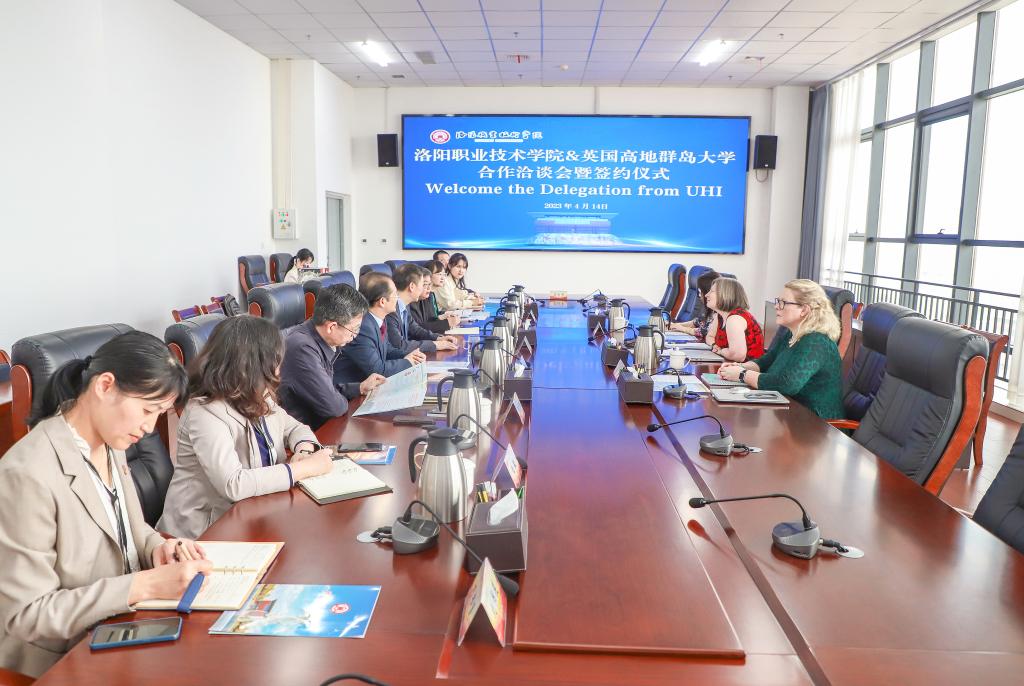 4月14日上午,我校与英国高地大学合作洽谈会暨签约仪式在图书馆801会议室举行,英国高地群岛大学副校