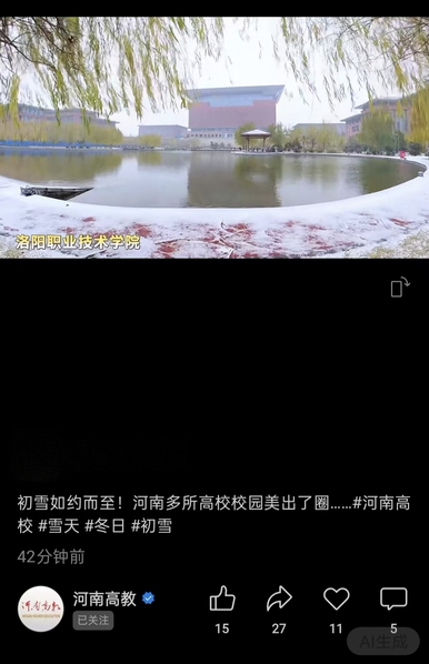 河南高教:初雪如约而至!河南多所高校校园美出了圈……