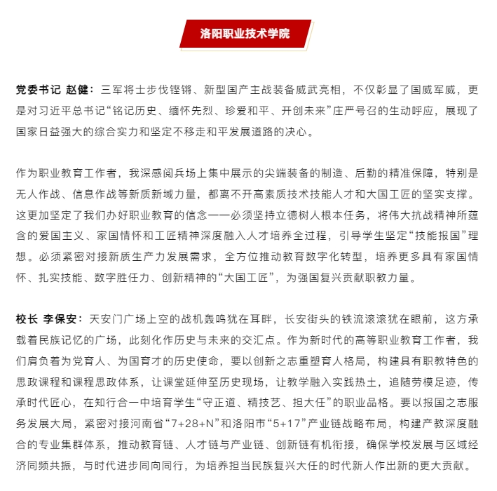 河南高教:融入思政育人!九三阅兵在河南高职院校领导中引发热烈反响!