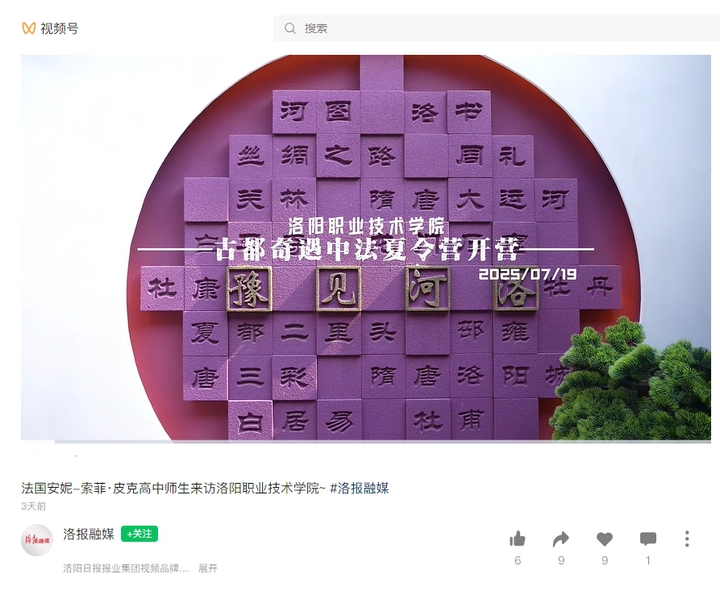 洛阳融媒:7月19日,参加2025“千年古都 文旅共创”古都奇遇中法夏令营的营员们走进洛阳职业技术学院,先后参观了“豫见·河洛印象”文化馆、马金凤戏曲艺术博物馆,并沉浸式体验了非遗剪纸、传统茶艺和戏曲表演等项目。