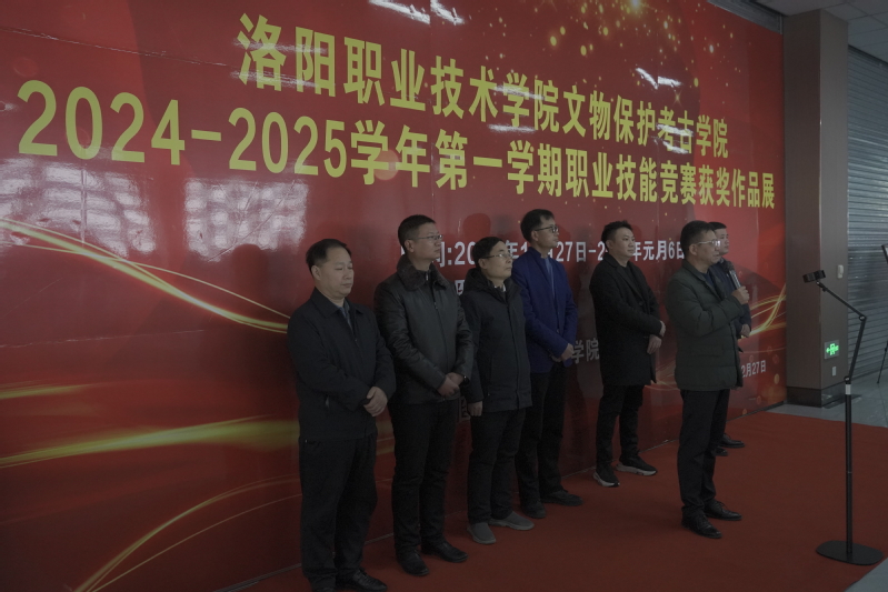 12月27日,由课程中心主办、文物保护考古学院承办、校图书馆主办的“洛阳职业技术学院文物保护考古学院2024—2025学年第一学期职业技能竞赛获奖作品展 ”在校图书馆开展,展览计划于2025年元月6日结束。校课程中心 2024 - 2025 学年专业职业技能竞赛方案发布后,文物保护考古学院迅速行动,积极组织协调。各专业教研室秉持着精心、紧张、严谨、有序的态度开展比赛工作,经过多轮激烈的比拼和严格的评审,目前已经圆满完成了各专业项目组优秀作品的评选和获奖名单的确定,并精心筹备了此次优秀作品展览。展览涵盖了青铜器修复、陶瓷器修复、字画修复、古籍修复、考古探掘技术、文物拓印技术、陶瓷器制作、壁画线描、版面制作、素描、国画、书法、文物讲解、文物创意版画等多个领域,同学们在这些项目中热情高涨,激烈角逐,经过不懈的努力和拼搏,诞生了一批又一批优秀的获奖作品。这些作品凝聚着同学们的智慧和汗水,也彰显了学院在专业教育方面的深厚底蕴和卓越成效。文物保护考古学院院长杨刚亮、 校图书馆馆长侯育谦以及文物保护考古学院师生260人参加了开幕式。看文物的保护与修复,欣赏中华优秀传统文化,感受文化传承之美,在修复的