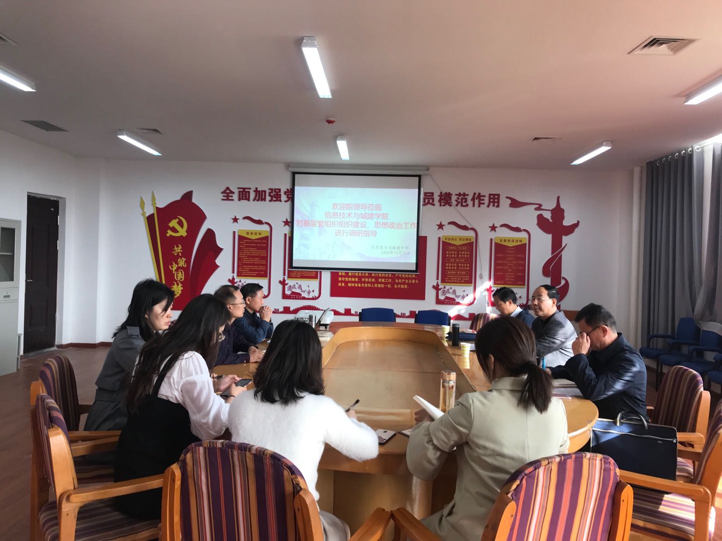 10月22日下午,学院党委副书记任晓平到伊滨校区1号教学楼,对信息技术与城建学院基层党组织组织建设、