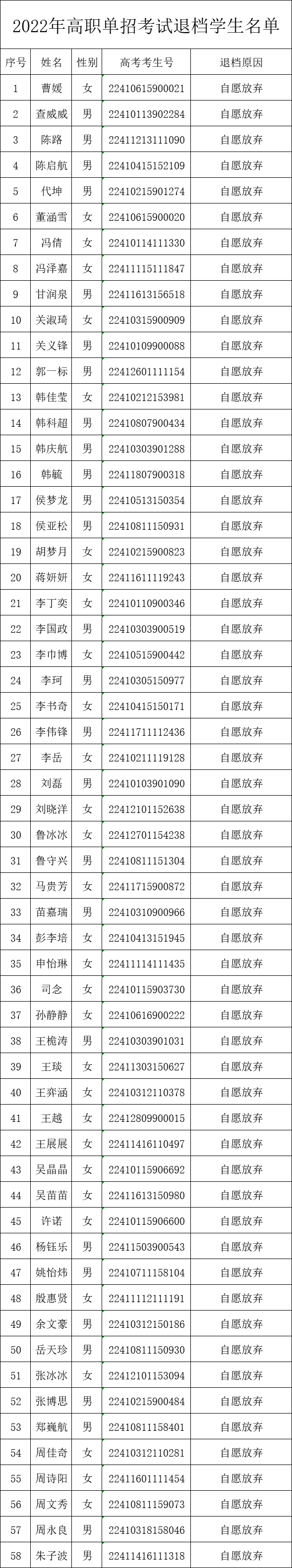 关于2022年单独考试招生拟录取考生申请退档的公告