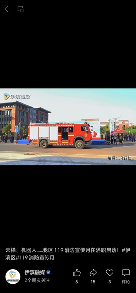 伊滨融媒微信视频号:云梯、机器人……我区119消防宣传月在洛职启动!