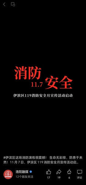 编者按:2023年11月7日,新华网微信视频号报道生命无彩排,防患于未然!11月7日,伊滨区119消