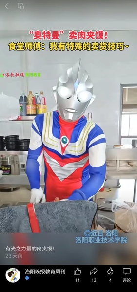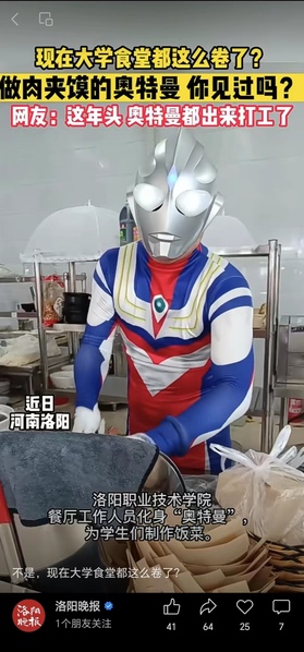 大学之大:河南一高校餐厅职工化身“奥特曼”卖肉夹馍