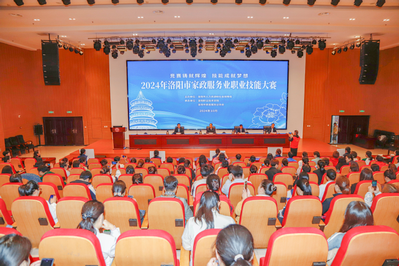 10月30日,2024年世界职业院校技能大赛公共管理与服务赛道健康养老照护组争夺赛在我校开赛。河南省教育厅二级巡视员杨学勇,洛阳市人民政府副市长任丽君,教育部大赛执委会委派裁判巡视员周齐佩,河南省教育厅职成教处一级调研员史文生,洛阳市教育局副局长乔思军,我校党委书记赵健、校长李保安,校领导韦元民、张志友、邓卫国出席开赛式。杨学勇、任丽君、周齐佩、赵健、李保安共同启动大赛。任丽君在致辞中表示,近年来,市委市政府深入贯彻习近平总书记关于加快构建现代职业教育体系的重要论述,不断完善现代职业教育体系,持续深化职业教育各项改革,高质量推进“人人持证、技能洛阳”建设。随着“健康中国”战略的深入实施以及老龄化社会带来的挑战,健康照护行业的市场需求日益增多,也进一步推动了洛阳“健康照护”特色职教品牌发展。此次大赛在洛阳职业技术学院举办,各位权威专家、优秀选手在比赛中相互学习,在切磋中交流技艺,为健康养老照护行业打造了高端平台,也为洛阳相关行业和企业提供了宝贵的学习机会。洛阳将以此次竞赛为契机,学习借鉴先进理念,强化产教融合、深化校企合作,努力建设健康养老照护职教人才培养新高地,为“健康河南”“健康中国